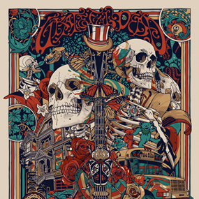 He also does screenprinted posters for movies, mostly for the Alamo Drafthouse in Austin Texas. After living in Bellingham WA, Charlotte, VT and Portland, OR, he currently resides in Brush Prairie, WA, next to the house he grew up in.