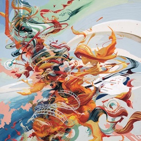 Visually, Brooklyn based artist Oliver Vernon’s paintings draw upon an incredibly varied pool of influences, from abstract expressionism, to post pop surrealism and the polished finish of figurative realism. Formally, his work is about the deconstruction, and hence the necessary reconstruction of visual space. From this central dichotomy stems many others: logic/illogic, physical/metaphysical, imprisonment/liberation. His paintings come to us, perhaps, as detailed snapshots of the few primordial milliseconds when the blueprint of the universe was being sculpted from the final throes of chaos. In this sense, anything goes. Each painting has it’s own set of rules, or rather the rules are being bent, broken and ultimately formed within each painting. Color, form, energy, architecture, good, evil, flesh and machine are lurking, never as physical entities, but as transient archetypes searching out their final places within the framework of the cosmos. Apart from this macro view, Oliver’s work can be seen at the micro level as well. We can view his paintings as representations of how the mind is formed from a foundation of thought, reason, and aesthetics, and how these entities are simultaneously at odds and interconnected.