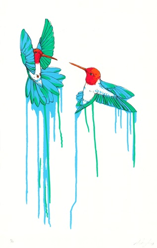 Mating Dance features two hummingbirds displaying their mutual affection with characteristic grace.