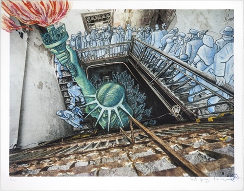 Signed by JR and Art Spiegelman on the right side corner (stamp and lead)