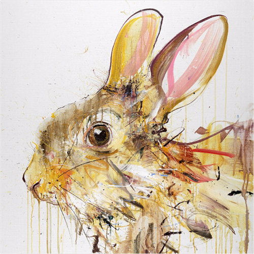 'Rabbit V' with its soft and serene colour palette, painted in signature Dave White style, this rabbit is depicted as truly beautiful and makes for a show-stopping piece of art. This piece is finished with silkscreen and varnished elements and is also available in a striking Hand-Finished and Gold-Leaf version.