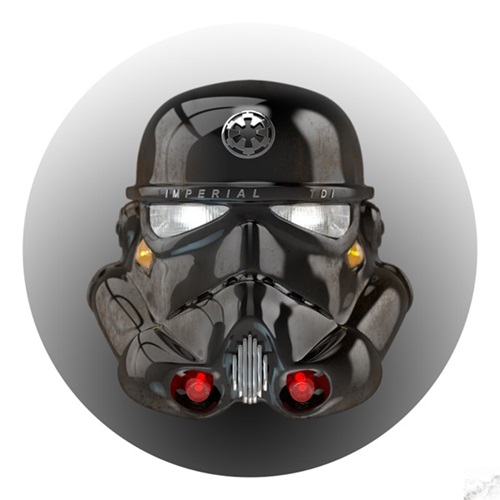 'Vroom Trooper' is an incredible Star Wars themed limited edition from The Strange Case Company. This series of prints see The Strange Case Company combine familiar products and images with the iconic Storm Trooper helmet. Each print in this giclee edition is printed on Innova Smooth Cotton Natural White 315gsm and features a silkscreen glaze. The print is hand signed by the artist from an edition of 50.