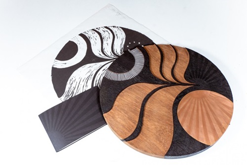 A limited wooden sculpture edition carved from a solid piece of purpose charred sustainably harvested Honduran Cedarwood, housing both screen printed copper and hand finished inlays.