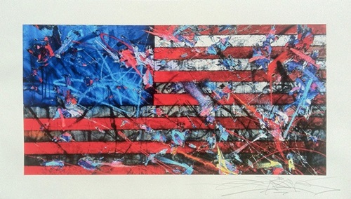 "I want to give my viewers the opportunity to own a piece of my original art. The High Definition Archival Digital Print format gives me the ability to make my paintings and assemblages accessible. This print is a replication of one of my American Flag Paintings. The original Battlestate painting uses vibrant reds and blues with splashes and splats of saturated colors. The red stripes are graduated in value from light to dark and the alternating stripes are in silver leaf foil. My rips and tears express a battle worn flag while creating added dimension to the paintings surface." Saber