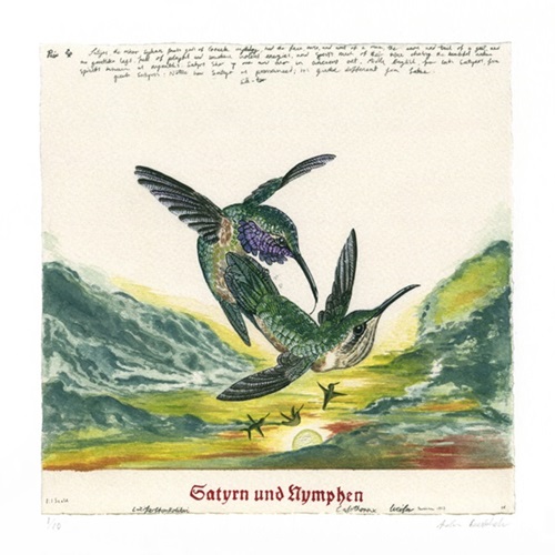 This is a 1:1 scale reproduction of the original painting and just like the original, the Lucifer hummingbirds depicted are life size.