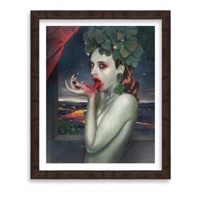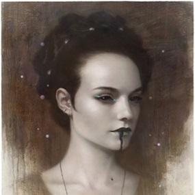 "Over the last couple of years I've done a few pieces depicting Shibari. I had recently finished a piece for Corey Helford Gallery entitled Metamorphosis which depicted some suspension and rope harness, this piece was one of the sketches that I toyed with when coming up with a concept for that show. So soon after Metamorphosis was completed I came back to this piece and continued on from the initial sketch. The themes in this piece are something I come back to quite frequently." - Tom Bagshaw