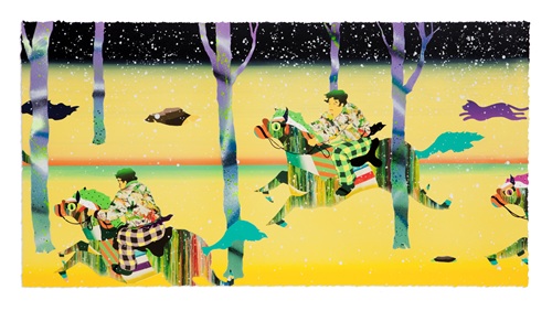 Paper Monster is honored to welcome Tomokazu Matsuyama, also know as Matsu, to the site with this great new print. This print was long in the making and is likely our most ambitious project to date, combining digital printing, screenprinting, and the old fashioned rattle can. Each print is uniquely hand finished and naturally vary in color and texture.