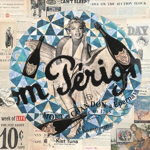Champagne Life • Autographed hand-embellished archival pigment print • Additional unique vintage collage and mixed-media embellishments • Printed on Hahnemühle William Turner matte fine art paper, 310 GSM • Hand-varnished • 24 x 24 inches