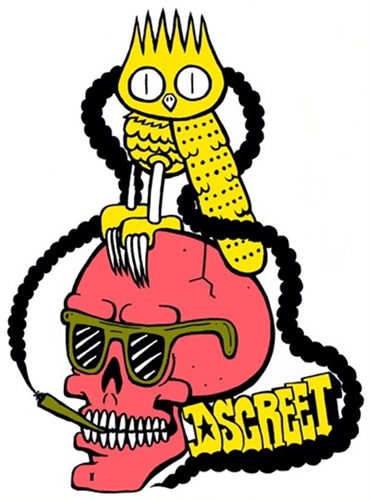 We are pleased to announce that the first in our new series of affordable Risograph prints is by the one and only Dscreet. Renowned around the world for his popular owl character, he used to paint as part of the infamous Burning Candy crew. His bright and instantly recognisable murals can be seen the world over and his original works are highly sought after.