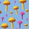 Christiaan Nagel's first screen print edition featuring his iconic shrooms in yellow on an erika pink background.