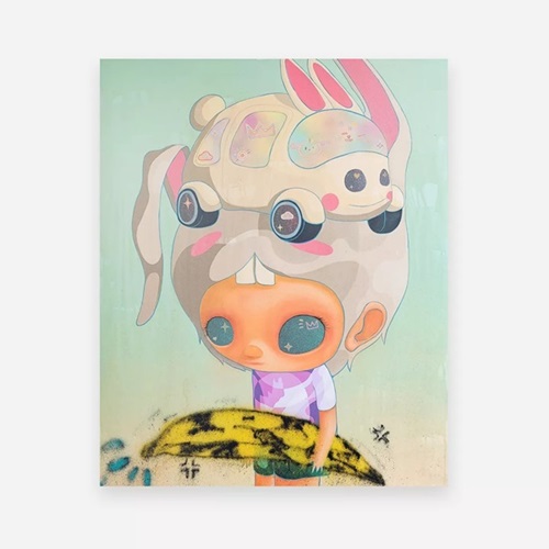 RABBIT CAR ON THE HEAD typifies Ryol's irreverent blend of pop, fantasy and surrealism.