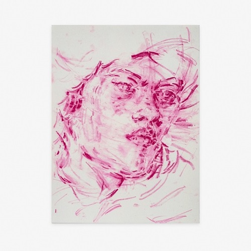 In support of the National Portrait Gallery in London, Elizabeth Peyton depicts the subject of Reynolds' eighteenth century portrait in gestural fuchsia.