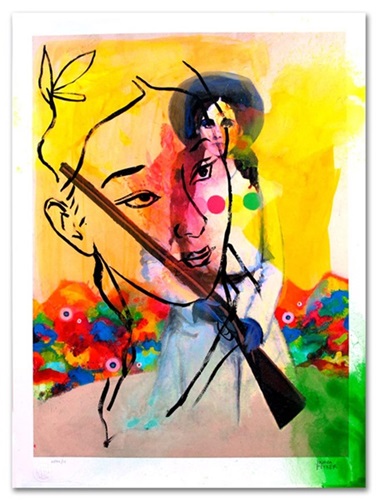 Spaghetti Western II is a Hand Painted Multiple (HPM) using Mixed Media overtop an archival pigment ink print on 100% cotton archival rag paper.