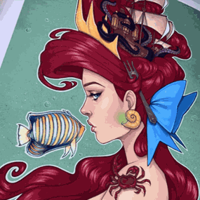 "This piece was created for a show called Incognito: A show of disguise, which was in October of 2012 . The original sketch is graphite on bristol paper, and then painting is acrylic on wood. I paint in thin layers of light washes of color on gessoed wood gradually building up layers until I achieve the desired look. The final painting is also coated in a satin varnish.