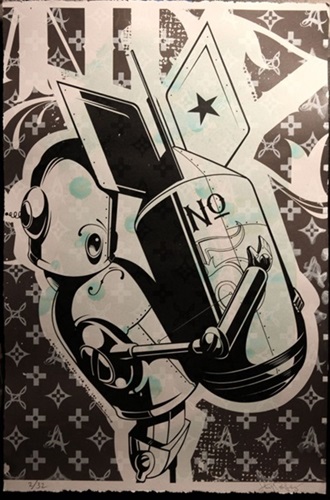 Coinciding with KMNDZ’s “The Heaviest” exhibition at FIFTY24SF Gallery, we’re releasing a print by KMNDZ entitled ‘Salt Peanuts’. The 3-color screen print was hand pulled at the legendary Cat Cult Press and is based off a mural KMNDZ executed with ZEX Boys for the Thinkspace Anniversary Show. After printing, the print has been hand embellished using teal acrylic paint by KMNDZ himself…