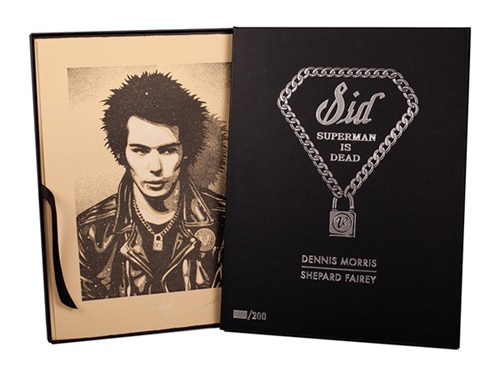 To commemorate the opening of SID, Superman Is Dead, Dennis Morris and Shepard Fairey have collaborated to release a limited edition box set of 10 Letterpress images of Sid Vicious. The 10 print images are Shepard’s illustrations based on Dennis’s photography. The editions are printed on high quality 100% cotton rag paper with deckled edges and the box is hand made and foil embossed with a leather-like texture inspired by the leather jacket Sid famously wore. The box set will be released this Friday, Dec 13th at Subliminal Projects at 6pm.
