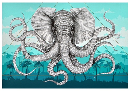 Alexis Diaz returns to Europe for the opening of his exhibition "La Linea" with JAZ at London's RexRomae. Based on his iconic wall in London, "Octophant" will be exclusively available at the show's opening next Thursday, March 6th. However, after some serious negotiations, we will be able to release 20 prints online for those who can't make it to the London show. Once again, this new print features the insane amount of detail that has become a trademark of Diaz's work.