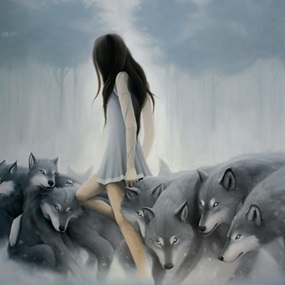 "This piece was originally created for Nathan Spoor's NYC Suggestivism show at Bold Hype, where it was sold. I almost always work the same way. I keep a scrap book of ideas that I want to work through, from there I'll do sketches until I'm happy with a layout. Before painting Ill usually do a study in photoshop to help work through any ideas. Then on to the painting..." - Joey Remmers