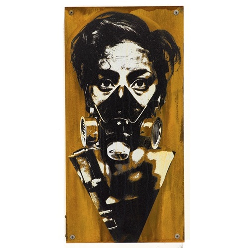 "These hand-painted multiples are based off of an original painting that I did for Carpe Diem at Loakl Gallery this past March of 2014. It's definitely a continuation of some my themes. This incarnation of BLNT is a 3 color screen print on a cradled wood box that was just recently completed in July. The boxes are treated with an iron based reactive paint that is rusted as the final process. All the hardware on the box also went through an acid bath to create a patina.