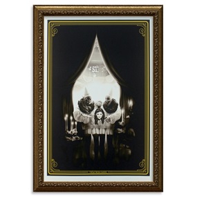"Wild Women of Borneo was painted in 2007 and is a bit of a tribute to a couple of things. There was a traditional small sideshow character that has been used through many carnivals Eeka. Eeka was the female "geek" carnival act. A "geek" carnival act is generally the lowest carnival act, mostly unsigned performers. So lots of artists have done their versions of Eeka, there is a bit of this repeating theme, so I wanted to take that and pull from it because I've always loved the Eeka banners and the whole concept of "the geek".