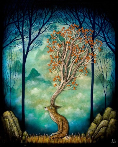 "Bearer of Wonderment" is an edition of 200 prints by Andy Kehoe. With a small border for framing, the print measures 9" wide by 11" tall. The archival print was created by Tiny Showcase and ships with a corresponding certificate of authenticity. The archival artwork has been printed on a heavy 290gsm natural white print making paper made from 90% bamboo fibres and 10% cotton.