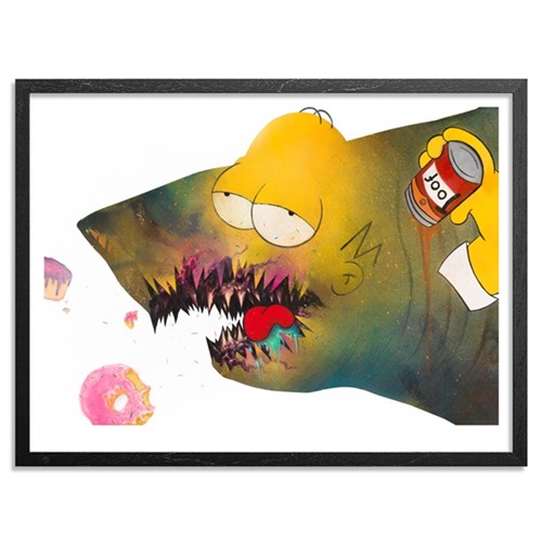 Bart was the mascot for my solo show at Inner State Gallery in Detroit. He embodies my personal experience growing up as a graffiti artist. Homer is probably more like who I am now." - Shark Toof